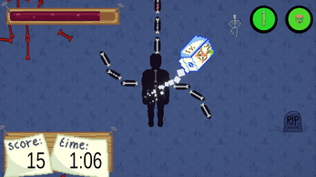 Walk around your graveyard, kill enemies and upgrade yourself by attaching their bones to yourself. Beware of the evil pumpkins and boss-skeletons!!!